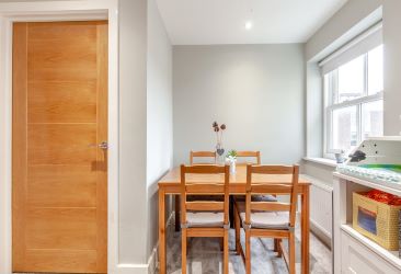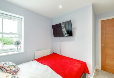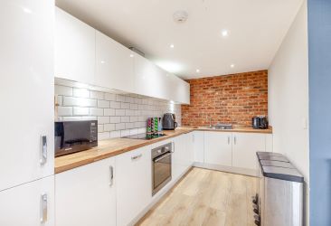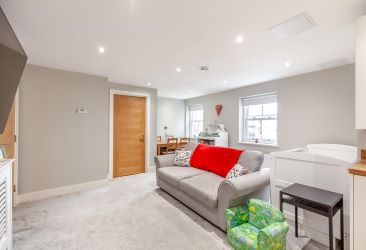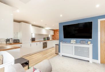 The apartment offers a stylish and contemporary interior, centred around a bright open-plan living space that incorporates a large, modern fitted kitchen. The kitchen is fully equipped with a built-in cooker, hob and fridge freezer, making it ideal for both everyday living and entertaining. The bedroom is generously sized and includes built-in wardrobes, while the modern family bathroom is finished to a high standard. Comfort and efficiency are ensured throughout the property with double-glazed windows and gas central heating.