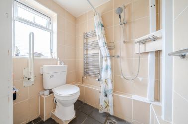 The first floor, provides loft access along with three bedrooms comprising two doubles and a good-sized single bedroom. The family bathroom includes a panelled bath with wall-mounted shower, pedestal wash basin with splashback tiling, low-level WC, extractor fan, and an opaque double-glazed window.