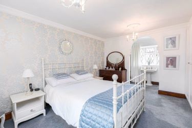 A split level staircase take you to the first floor landing providing access to all rooms as well as the airing cupboard, shoe cupboard and loft. There are three double bedrooms upstairs all benefitting from fitted wardrobes. The master bedroom has the added benefit of an en-suite comprising a shower cubicle, pedestal wash hand basin and low level W.C. Finally, the family bathroom is fitted in a white suite comprising a corner bath unit, pedestal wash hand basin and low level W.C.
