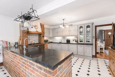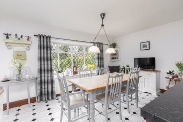 Accessed via a five-bar wooden gate, leads to a gravel driveway providing off street parking for numerous vehicles leading to a garage and a large front garden laid to lawn with mature hedging and trees providing plenty of privacy. Upon entering the home, you are greeted with a spacious entrance hallway laid to original parquet flooring with stairs to the first floor, understairs storage cupboard and a utility cupboard.On your right is a useful downstairs bedroom/study overlooking the front garden with a decorative display unit within an archway. On your left is the dual aspect living room overlooking the front and side aspects with a feature gas fireplace set within a cast iron surround creating a focal point within the room. Double doors lead through to the dining room with French doors accessing the rear garden and space to comfortably hold an eight seater dining table and chairs. To the rear is a beautiful kitchen/breakfast room, perfect for entertaining. The kitchen is fitted with a range of solid oak wall and base units incorporating cupboards and drawers with granite worktops over. Integrated appliances include a Smeg oven with five-ring gas hob over, dishwasher, fridge and freezer and under counter lighting. There is additional space for a dining table and chairs and views across the rear garden. Completing the downstairs is a rear lobby giving access to the garden and a downstairs cloakroom comprising a pedestal wash hand basin and W.C.