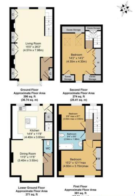 The upper floors comprise three bedrooms and a well-appointed modern family bathroom.