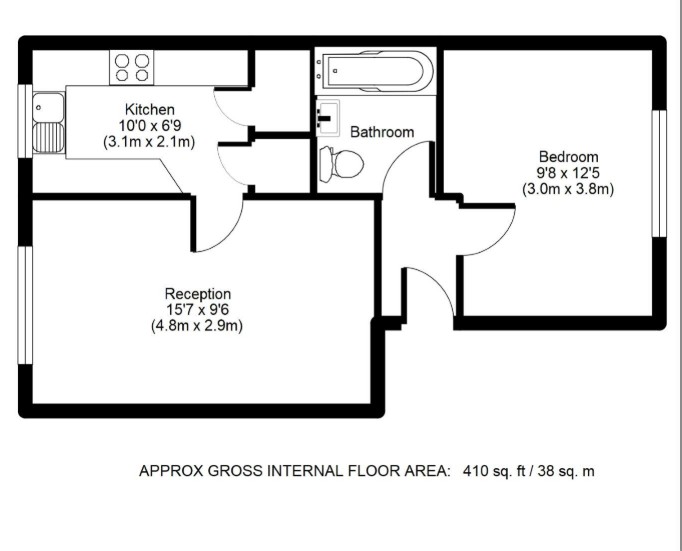 Accommodation comprises a 15ft reception room, separate kitchen, bathroom, and double bedroom. The property also benefits from residents parking, making it practical and appealing for both first-time buyers and investors.