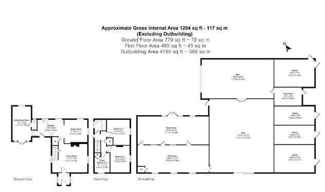Equestrian Facilities: Multiple stables, a dedicated tack room, and extensive outbuildings including a large barn, open barn, workshop, and storerooms.