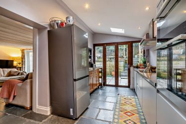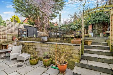 At the rear you can enjoy the paved garden with plenty of space to relax and entertain.