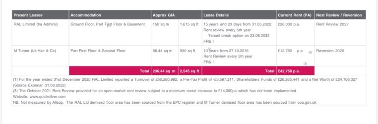 The ground floor is let to RAL Limited (trading as Admiral) on a lease expiring in 2037, providing a long-term income stream from an established national operator within the gaming sector.