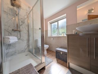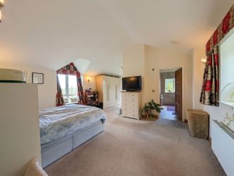 Upstairs, the property features three comfortable bedrooms, all with en-suite and each offering peaceful retreats with plenty of room for furnishings and personal touches. The main bedroom benefits from particularly impressive views and a good size dressing room area.